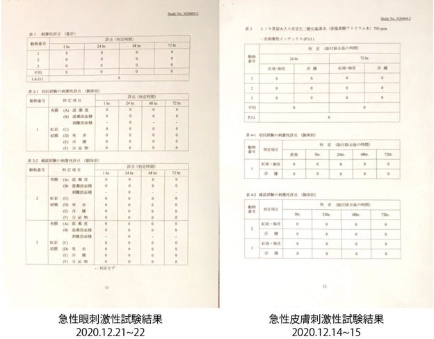 急性皮膚刺激性試験、急性眼刺激性試験にてどちらも刺激性がないことが証明されました。手指にも毎日のお掃除にも安心してお使いいただけます。