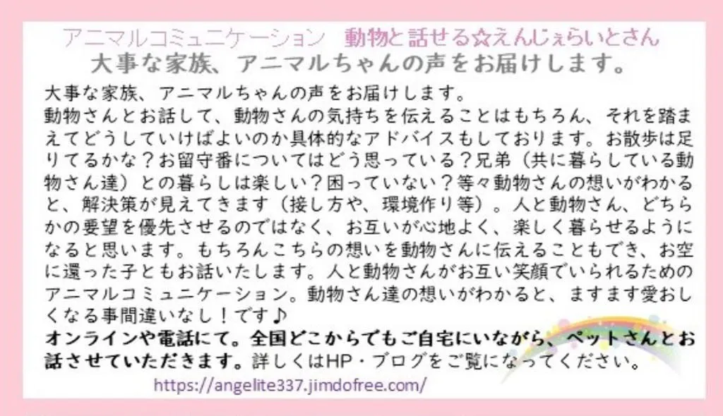 えんじぇらいとさんのアニマルコミュニケーションチケット付き。