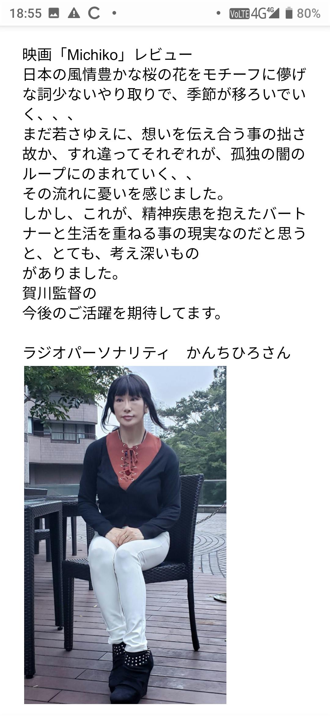 川崎FMパーソナリティーのかんちひろさんに、「Michiko」のReviewを頂きました