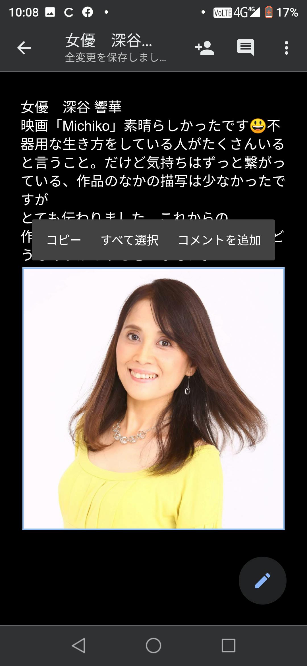 感謝の気持ちを込めて、女優深谷響香さんの映画「Michiko」のReviewを載せます。