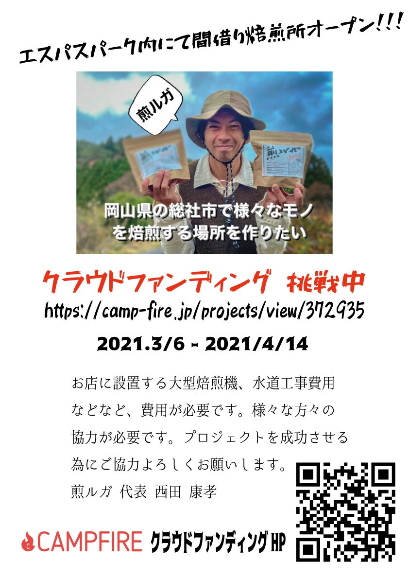 本日は焙煎所をオープンする場所の総社市中央のエスパスパークにクラウドファンディングのポスターを作成して貼ってきました