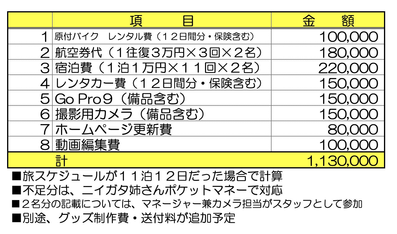 ニイガタ姉さんの交通費や宿泊費、