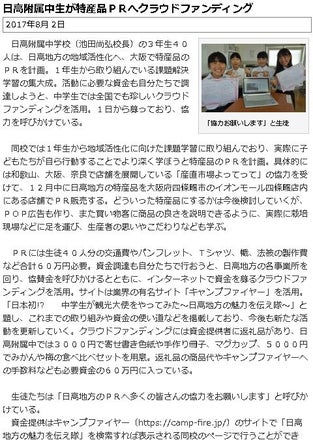 8月2日付けの夕刊に掲載して頂きました。 ありがとうございました。