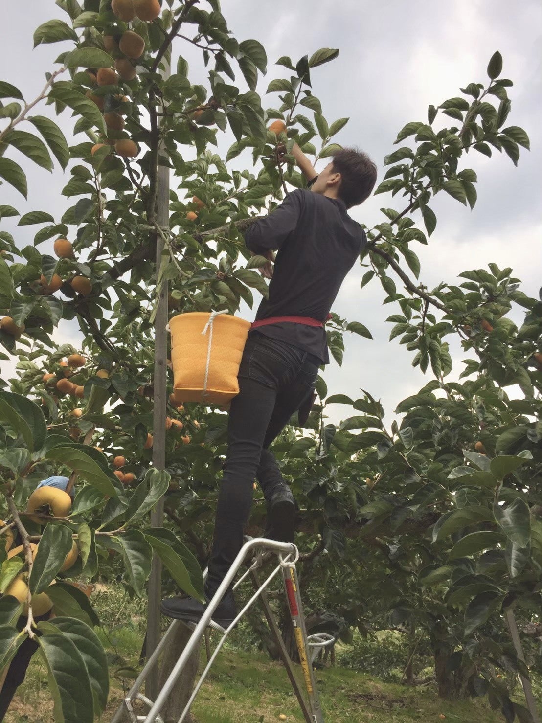 昨年の秋には、奈良の柿農家さんの山へ行き、自分たちで実際に柿を収穫しました。柿の品種や育て方の話を聞き、農家さんならではの柿の食べ方なども教えていただくことができました。