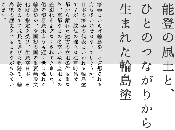 毎日の、無くてはならないおいしいお袋の味を、より一層ひきたてる輪島塗のお椀は、