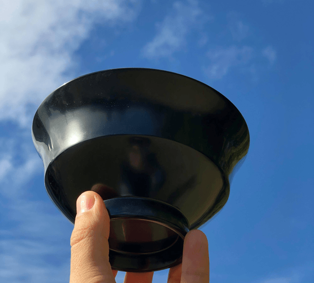 形は「端反り」と呼ばれる形を用いつつ、伝統的な糸目というギザギザをなくしたシンプルな形に改良し、使い勝手の良く、現代的な輪島塗の飯椀を作成。