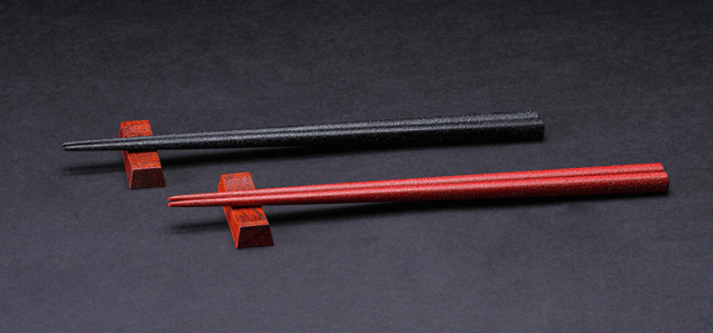 本漆を使ったごまかしのない本物の良さ、輪島塗を日常に使う満足感を塗り重ねました。本漆の箸、乾漆仕上げで使いやすくしました。