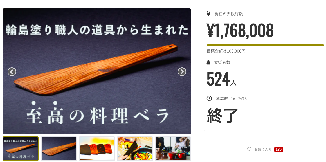 お陰様で多くの方々にご支援頂きプロジェクトを成功させることができました。