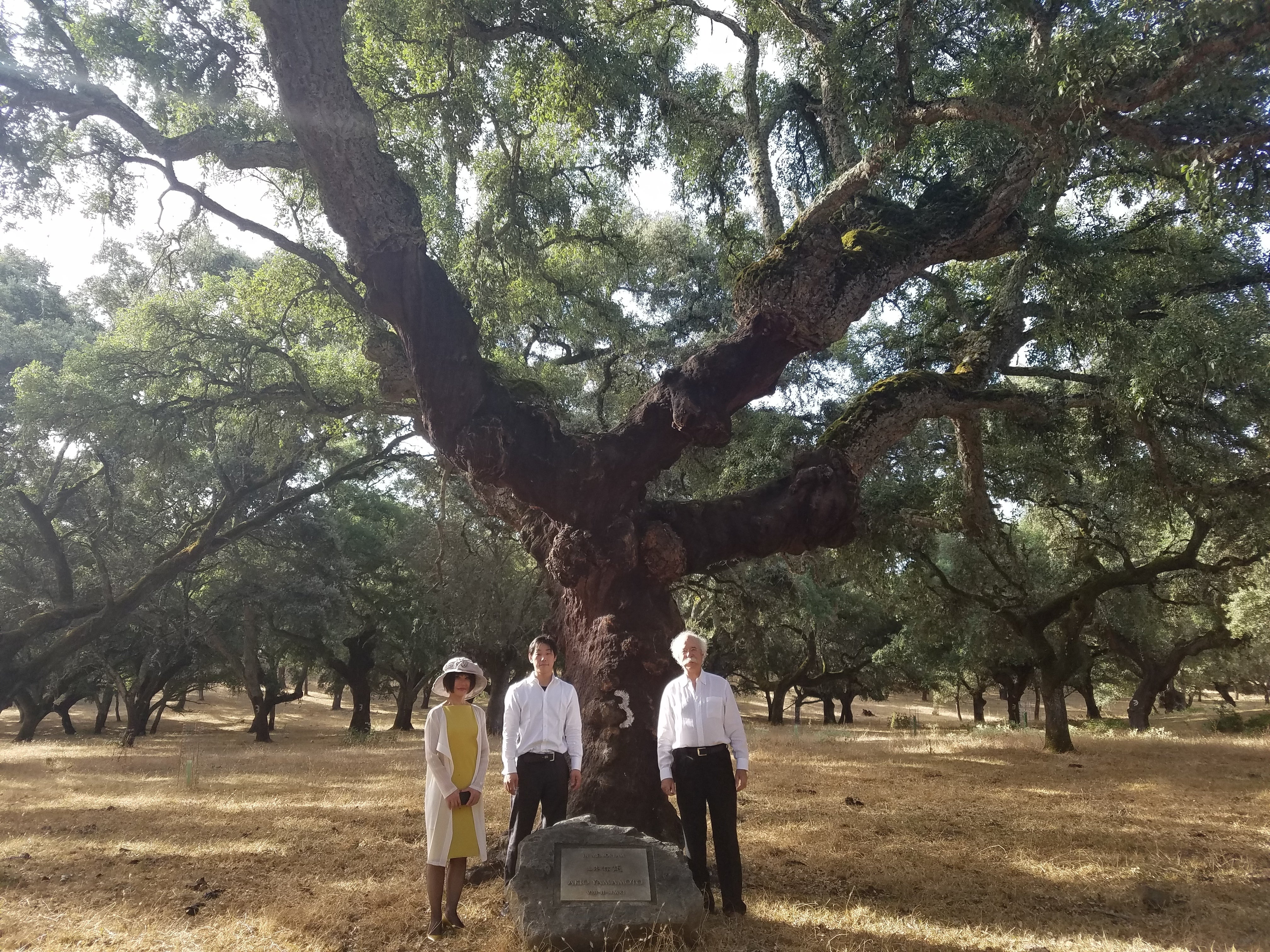 生産者Julio氏と樹齢300年、どんぐりの木の前で