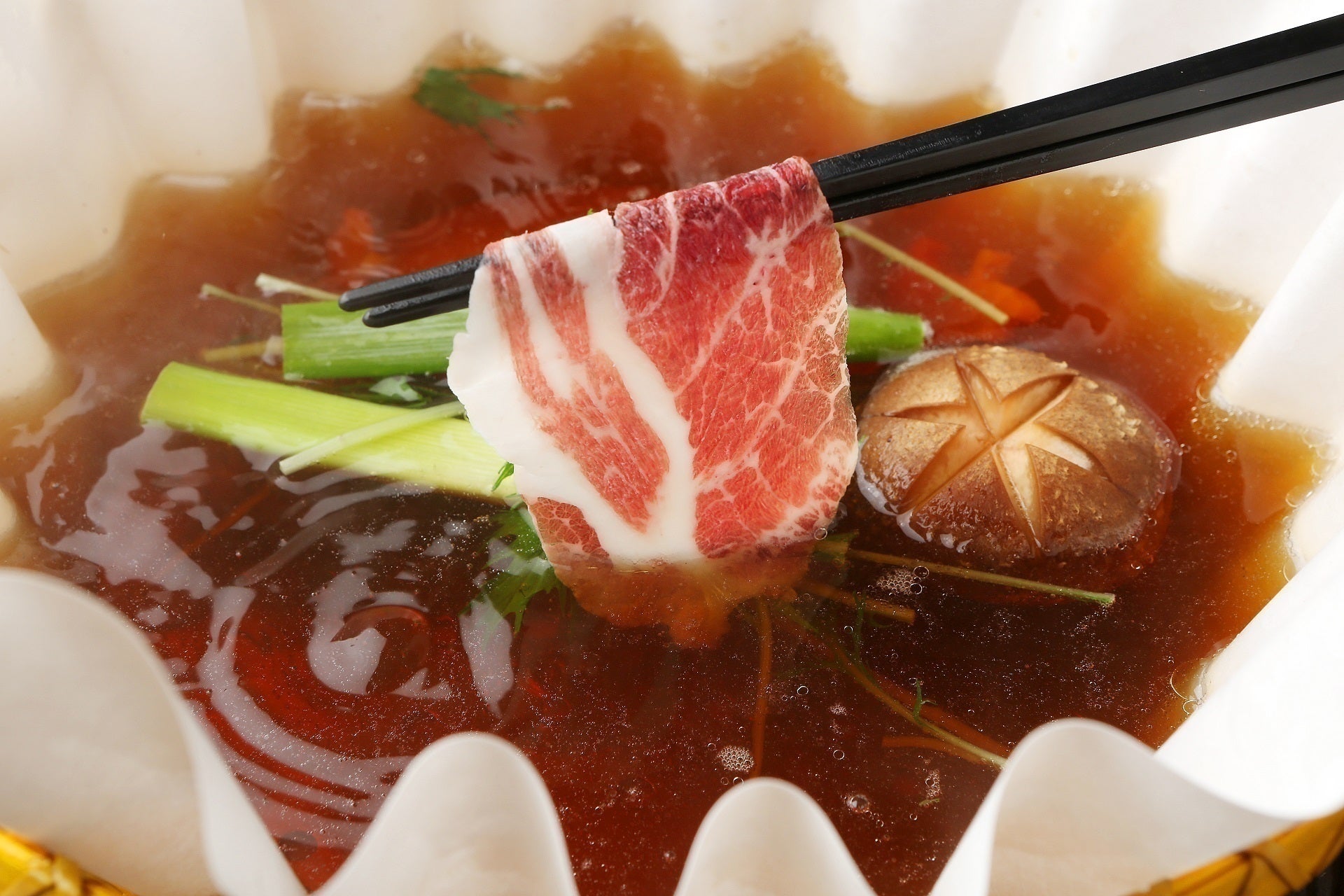 不思議と和風ダシとのしゃぶしゃぶが良くあいます。濃度の高い豚エキスに野菜はレタス、白菜、水菜が特に良く合います。