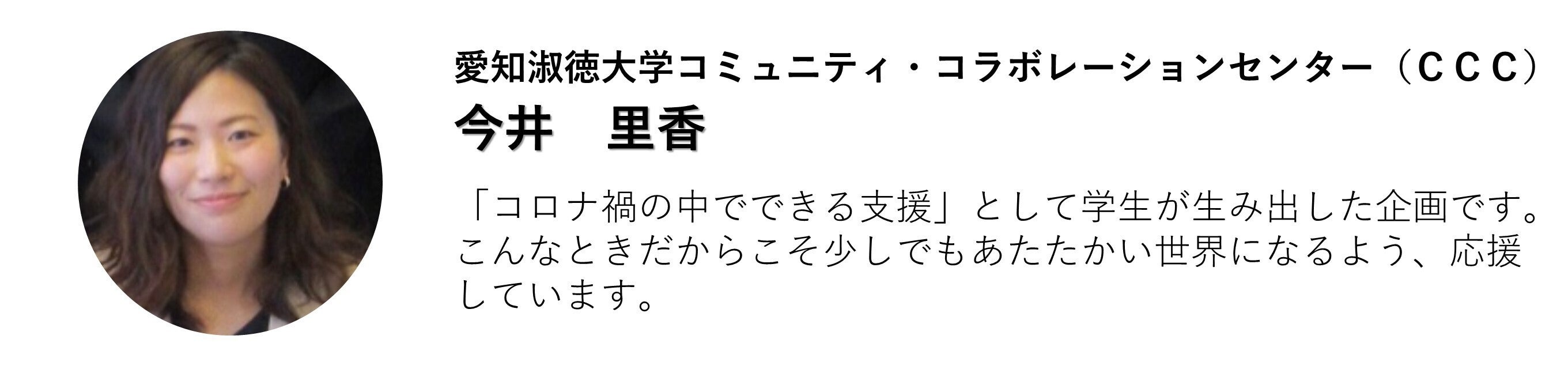 私たちが通っている愛知淑徳大学にはCCC(コミュニティ・コラボレーションセンター)という、地域社会と大学が連携している教育センターがあり、学生が地域社会の一員として地域の発展に貢献することを目的としています。