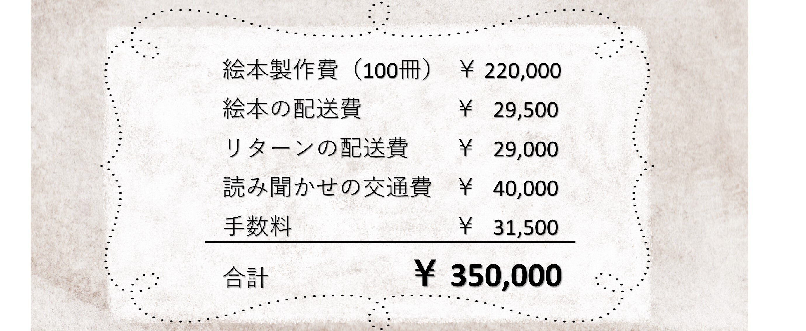 絵本の制作費、配送費にするため、250,000円のクラウドファンディングに挑戦します。