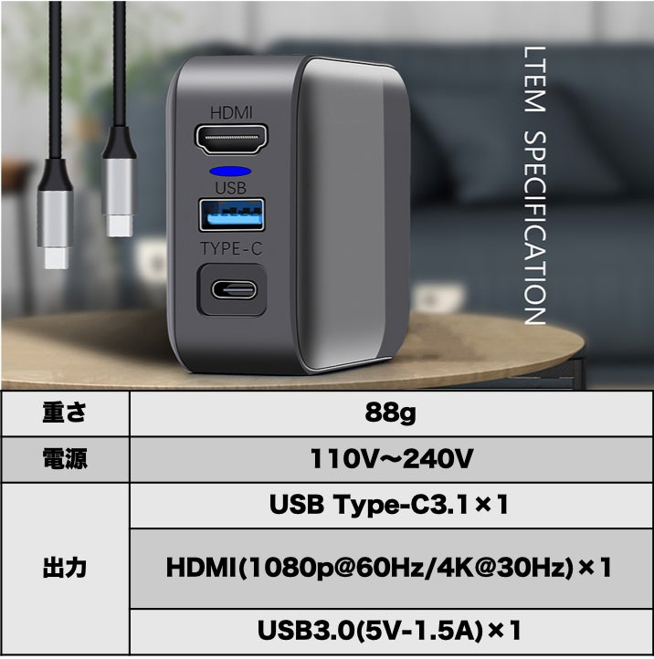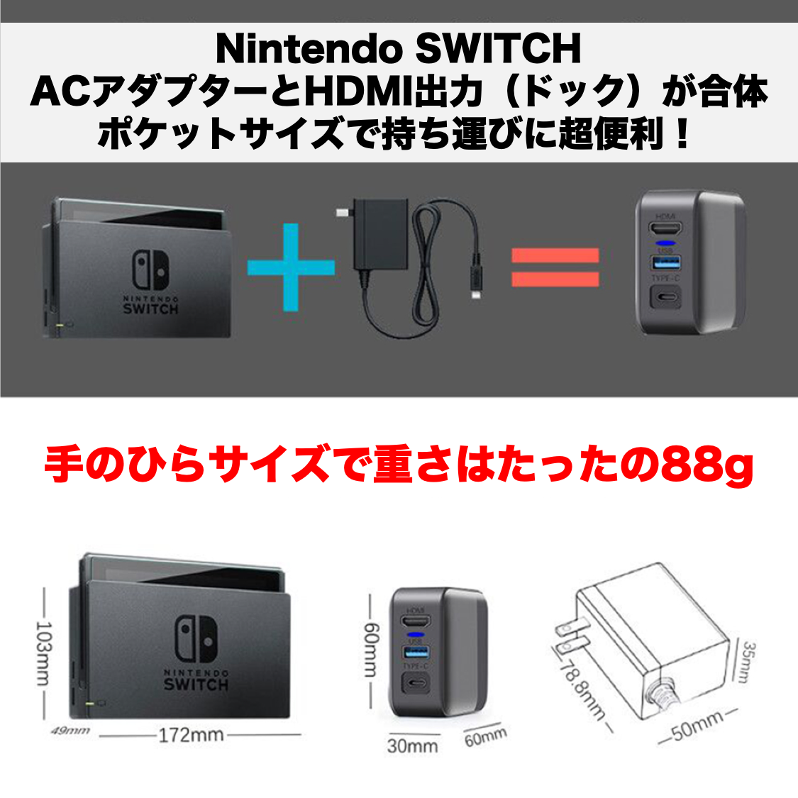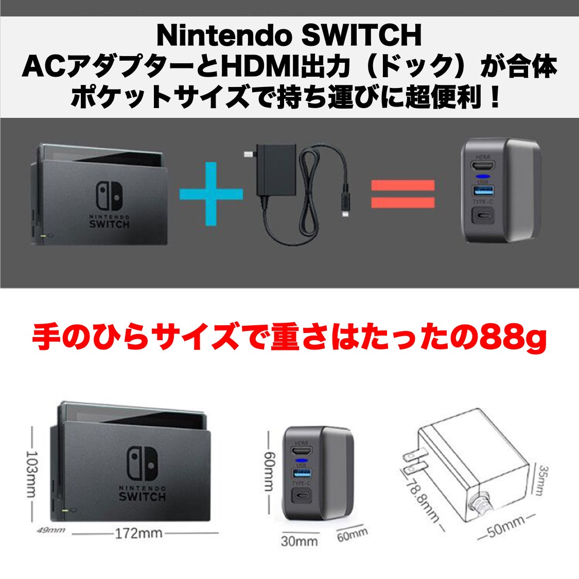 Type-Cに繋いだデバイスはHDMIから画面情報や音声も出力出来ますので、Nintendo Switchはもちろん、Type-Cしか備えていないデバイスを、HDMIを通してモニターやテレビ、プロジェクターなどに接続が可能です。