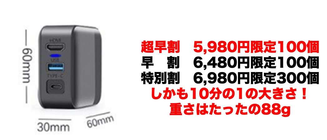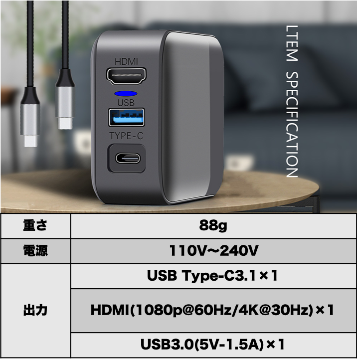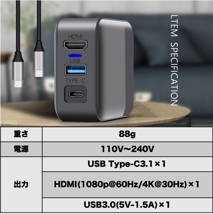 重量88グラムと超軽量。コンセントに挿し込むプラグ自体は本体に収納が可能ですので、持ち運びの際にカバンに入れても引っかかりません。