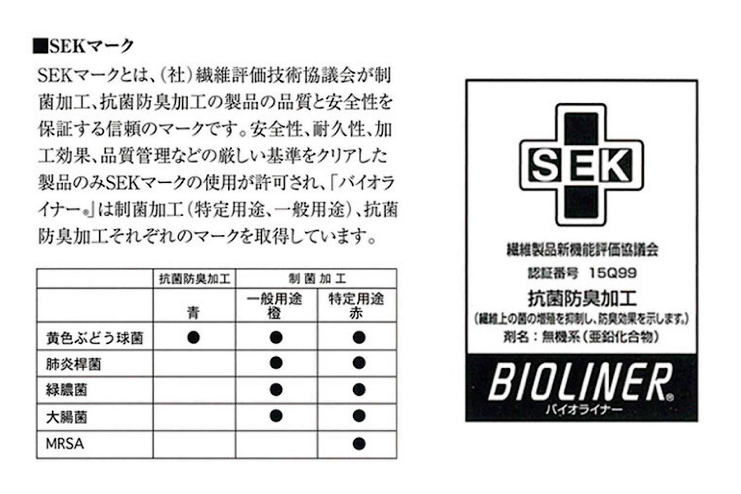 当初は通常のナイロン生地の予定でしたが、清潔で衛生的な抗菌防臭・消臭素材「バイオライナー+消臭デオドラント加工」に変更いたしました。