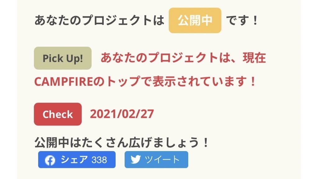 さらにCAMPFIRE様からのお知らせによると