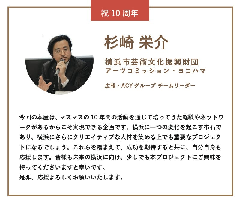 この10年、まさに横浜という同じ都市でマスマスを見ていただいてきた、杉崎さんならではのメッセージを頂戴致しました。