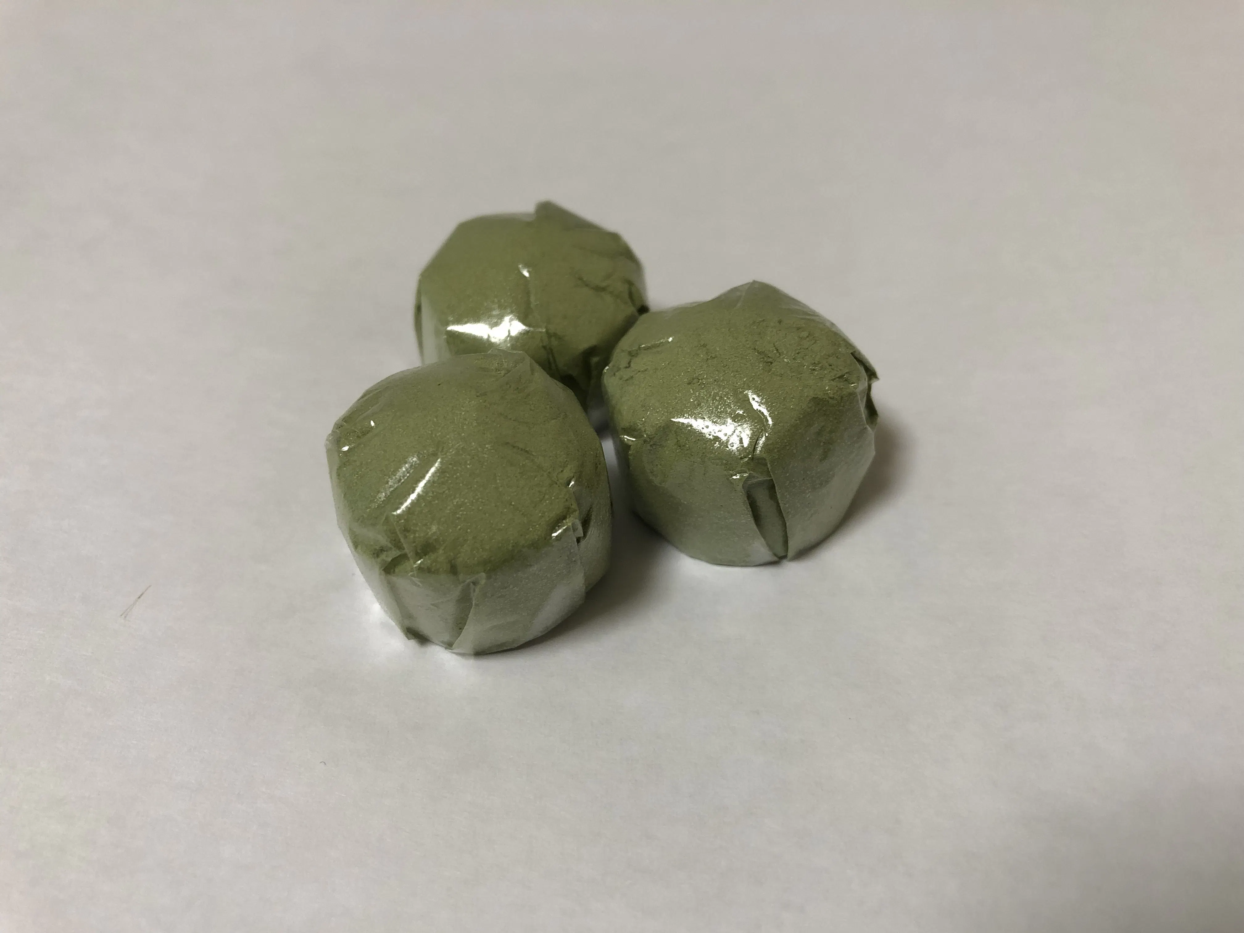青汁(大麦若葉)の粉をオブラート包装してみたものです。