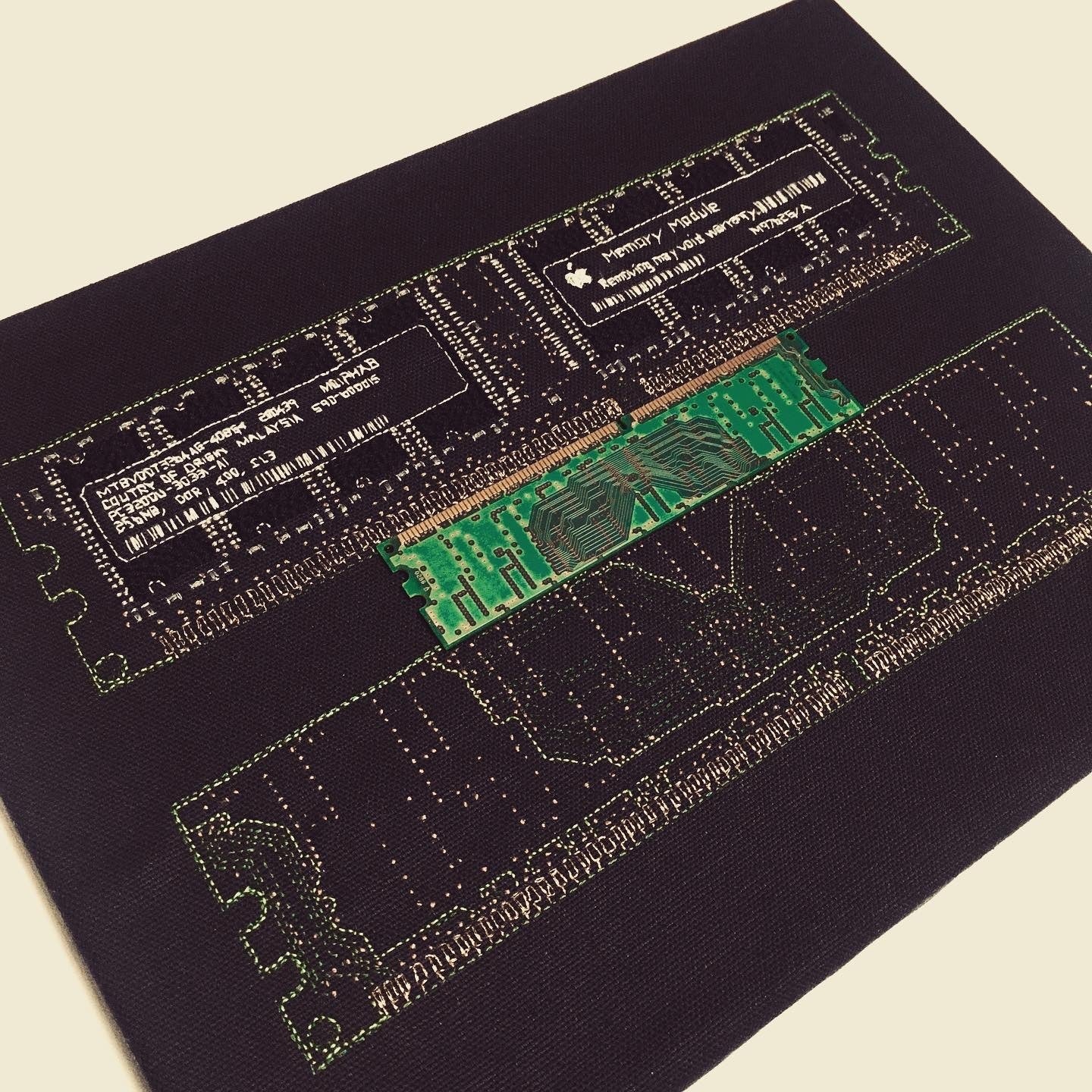 その技法を敢えて用い、Geekなモチーフを選択する事により刺繍が持つジェンダーイメージを撹乱。
