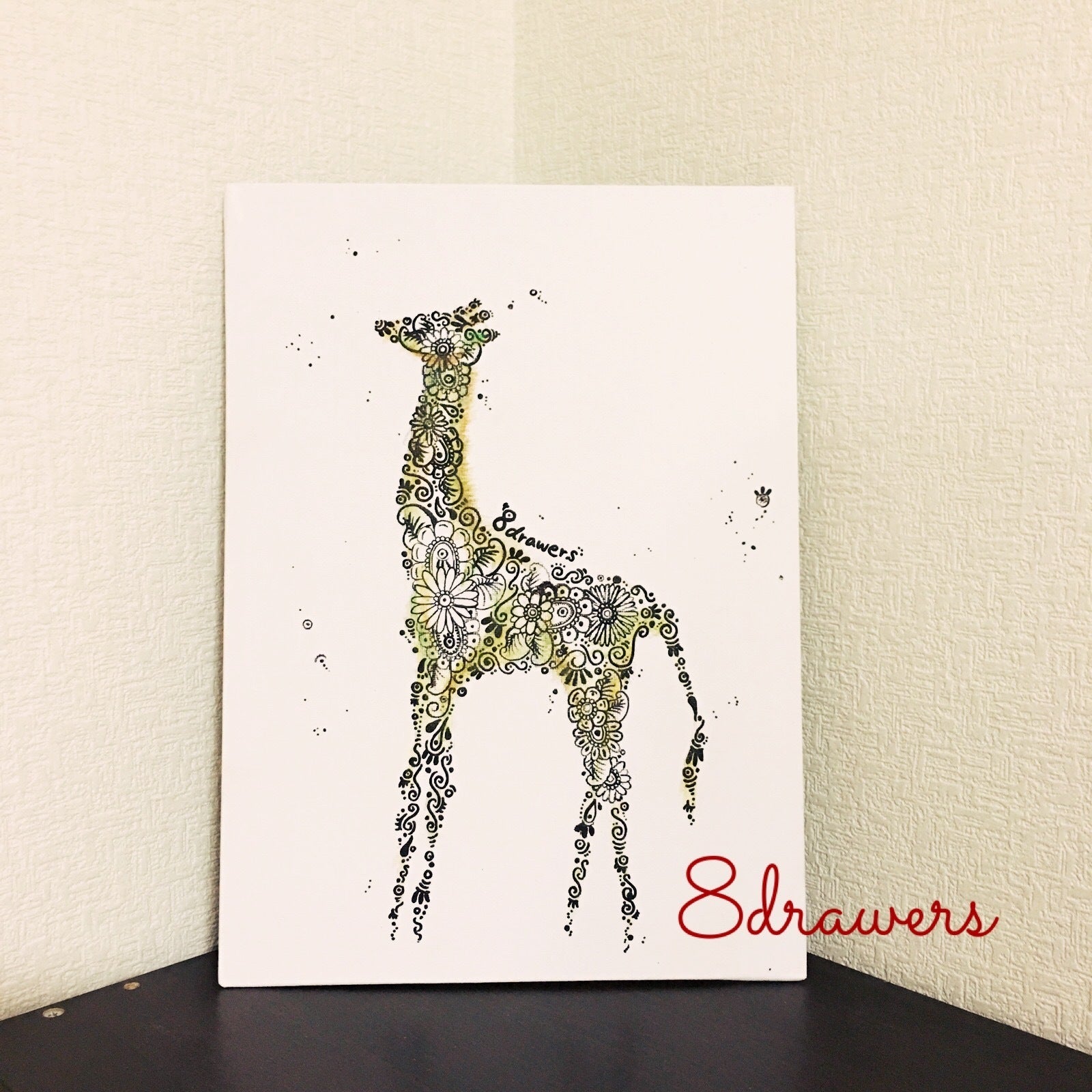 今の動物と華柄を組み合わせて描く原点になったのがこちらの絵。キリンです。
