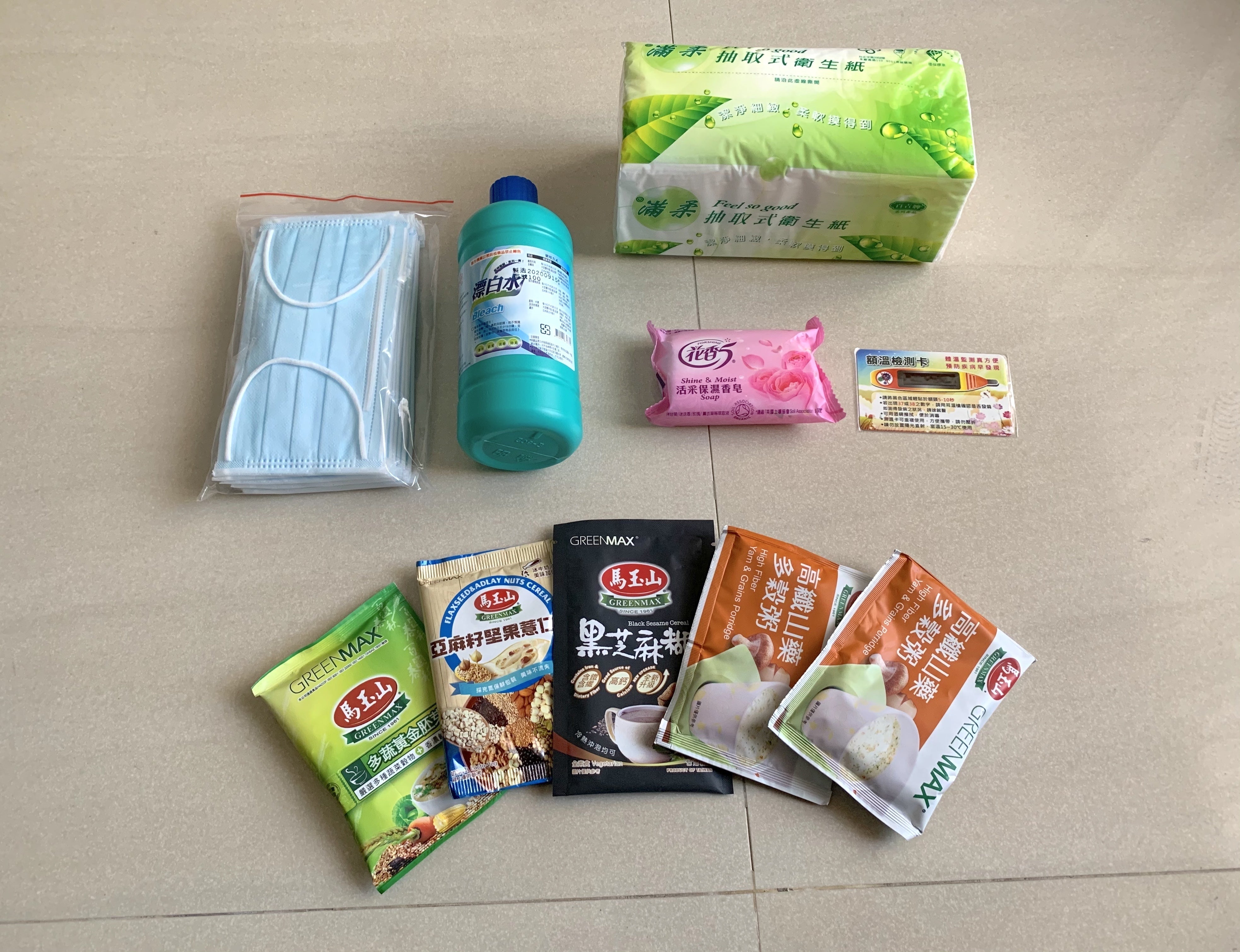 衛生福利部の方が隔離期間中に差し入れてくれた防疫アイテムたち