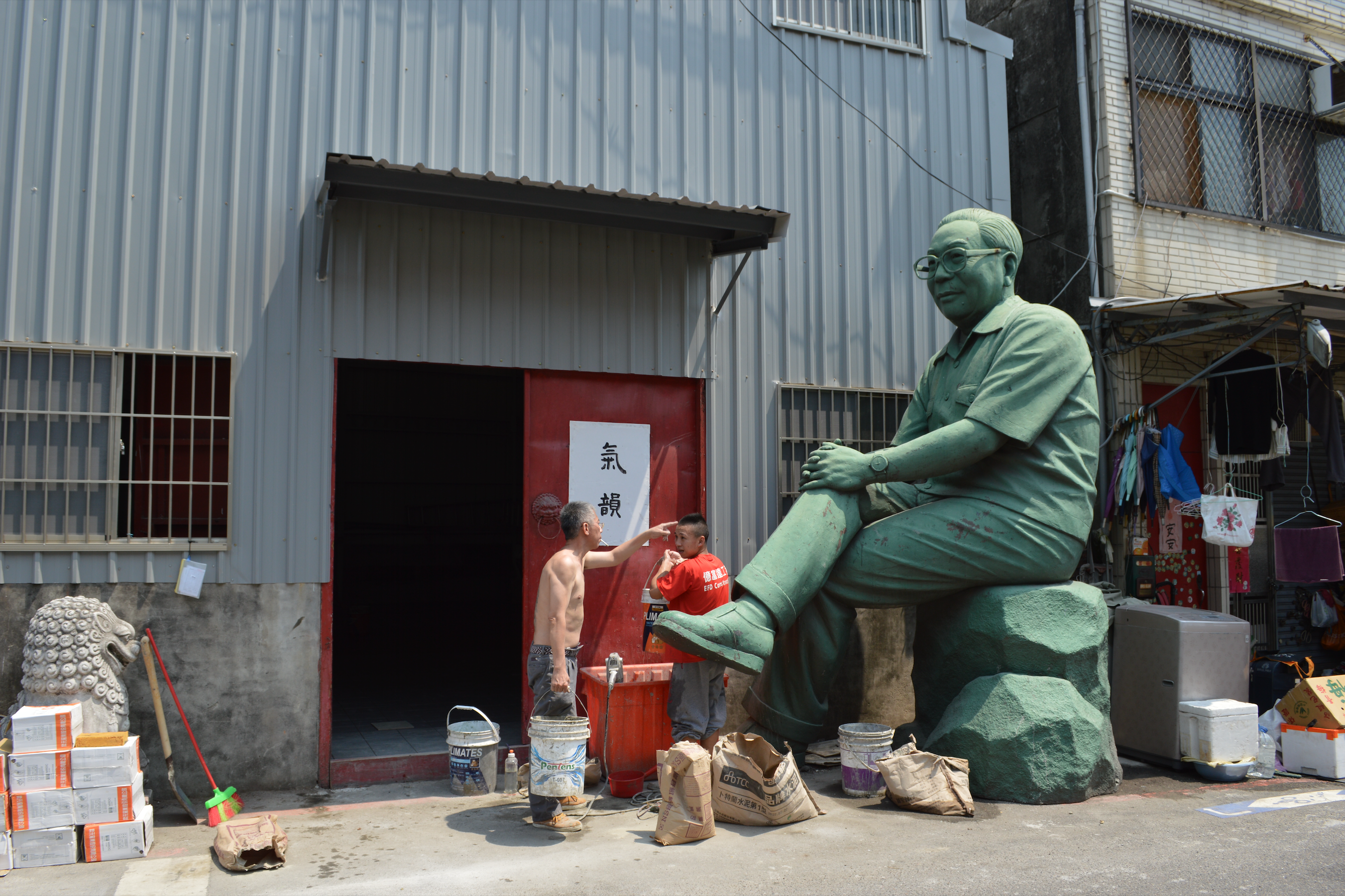 蒋介石像の製作者のアトリエを訪問した際の様子