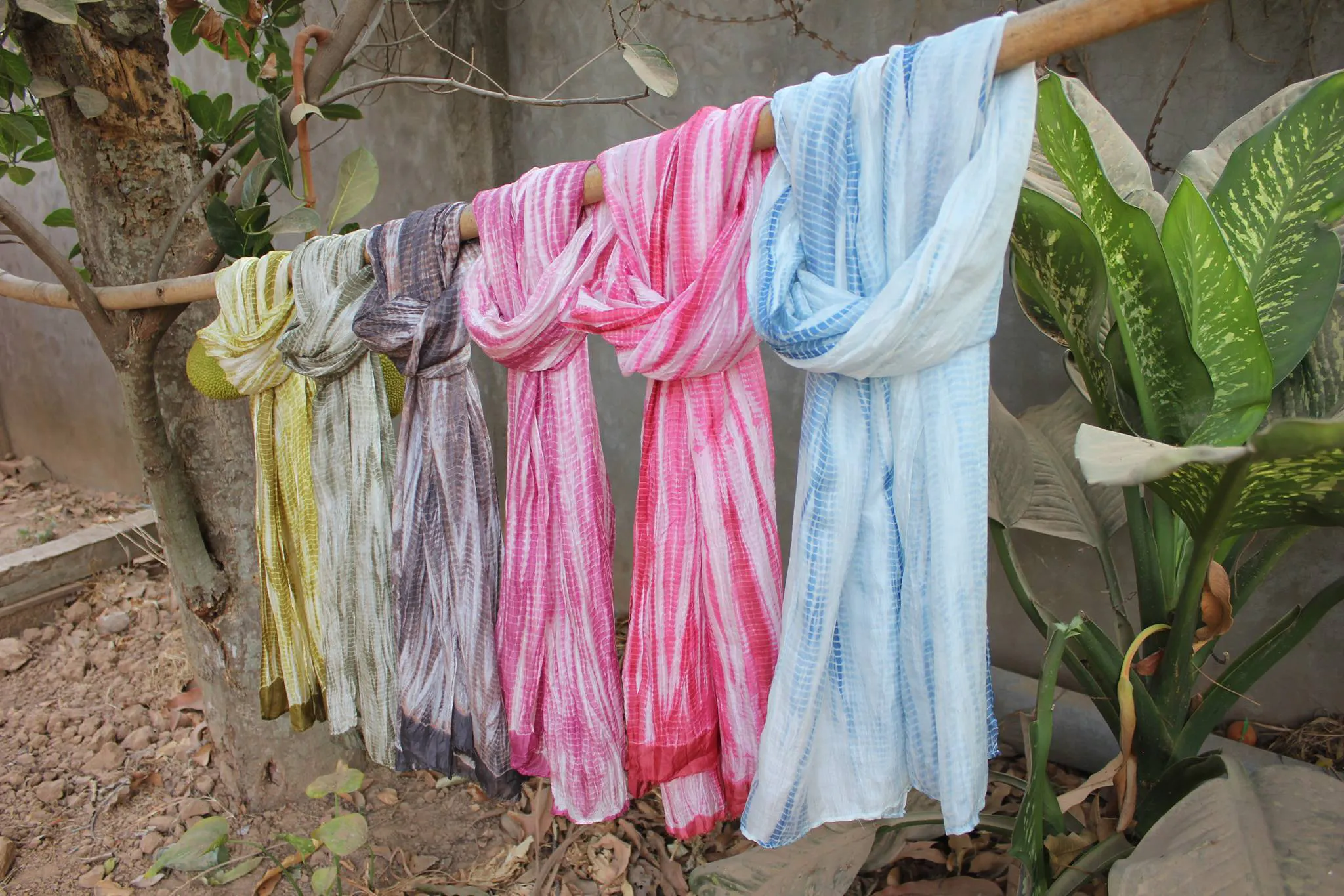 天然染料で手染め、手織りをした100%ピュアコットンでできたスカーフ。