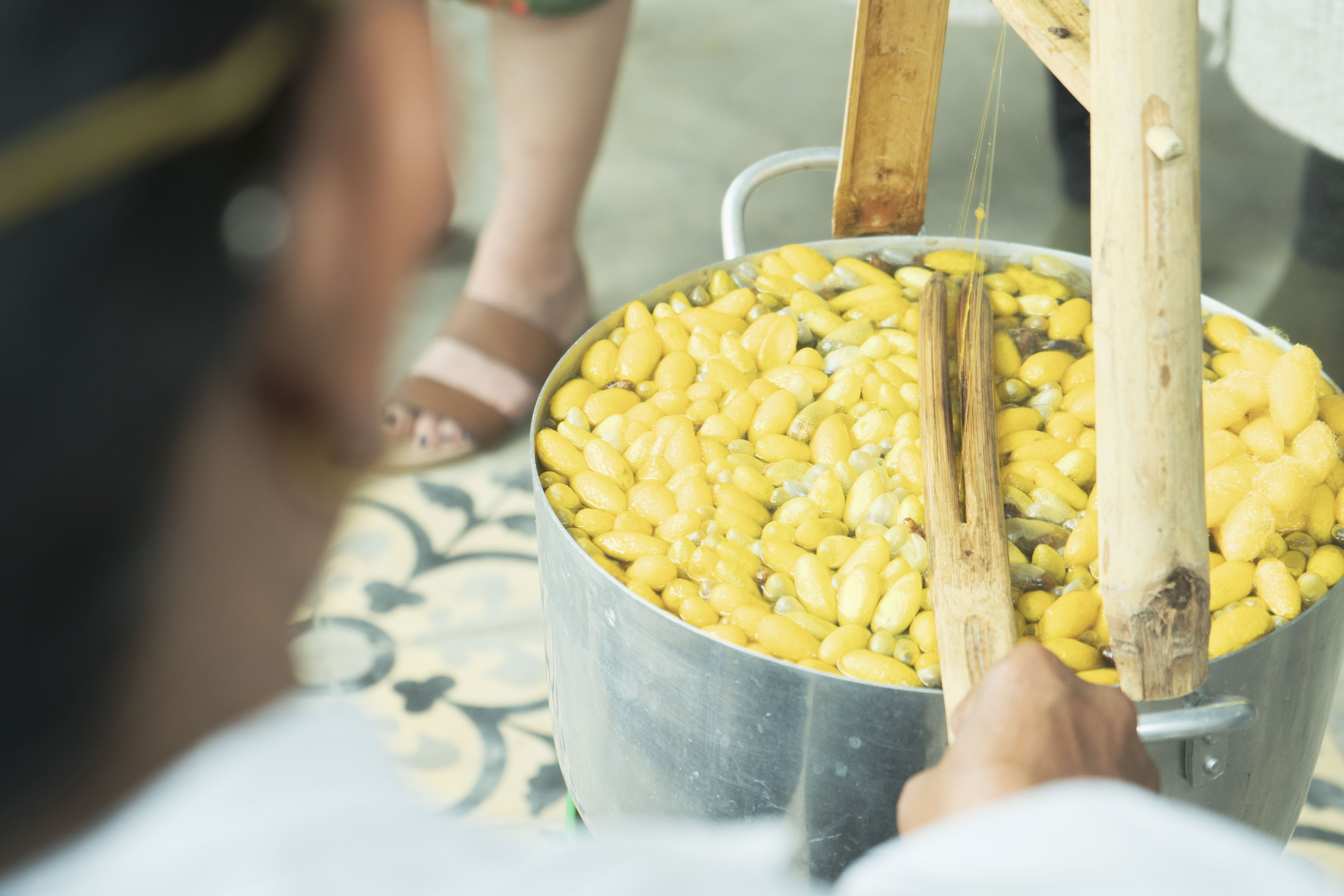 厳選された上質の蚕だけを選別して丁寧に織り上げていきます。