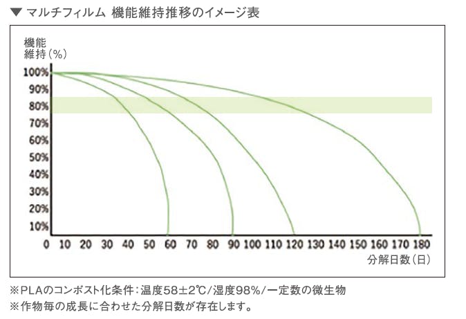今回の0.01mm製品では、土中へのすき込みにより、90日程度での完全生分解が可能です。