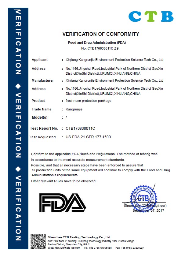 アメリカ食品医薬品局(FDA)による安全性認証と、DAkkS(ドイツ連邦共和国の国家認定機関)による生分解性認証を取得しています。