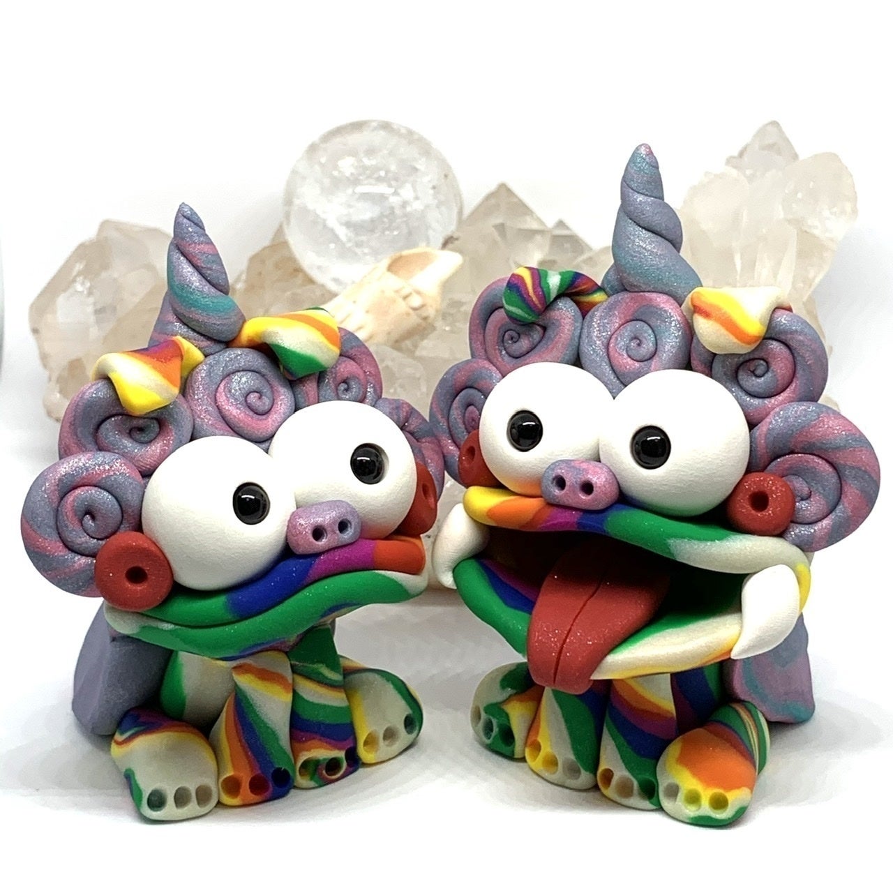 絵本5冊とオリジナルポストカード5枚、ステッカー5枚。レインボー7匹ベビーシーサーセット(ハンドメイド)。絵本の巻末にお名前記載。