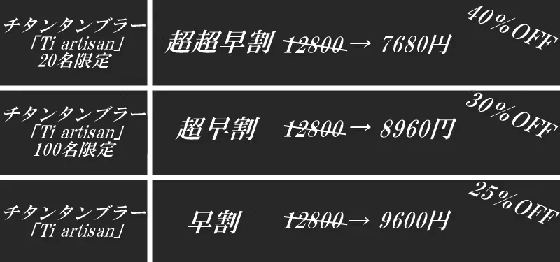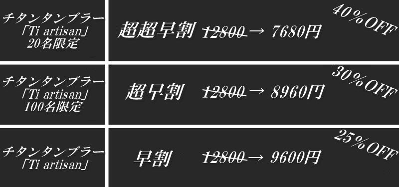 チタンタンブラー 「Ti artisan」 はたったの110gです!