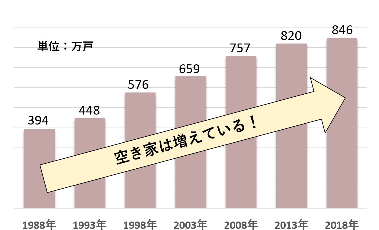 空き家は全国で846万戸、全体の約13.6%あるとされ、これが2033年には約30%まで増加すると予測されています(数は総務省2018年調査、予測は野村総研2015年調査)。