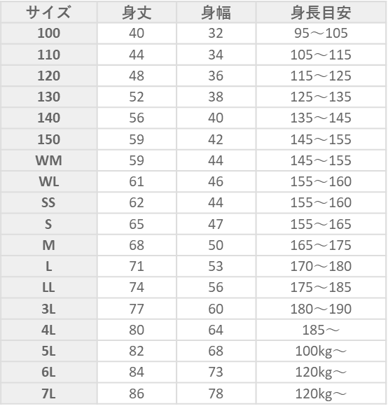 ※ご注文の方は、備考欄にサイズを、下表をご参考にしてご記入ください。