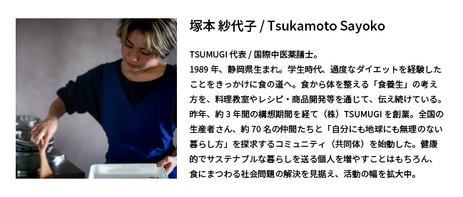 私たちは、食卓を軸に、自分にも地球にも「善い暮らし」を探求する生活共同体(コミュニティ)「TSUMUGI」を運営しています。国際中医薬膳士、管理栄養士、調理士などの食のプロフェッショナル、生産者さん5組、一般メンバー63名で活動しています。