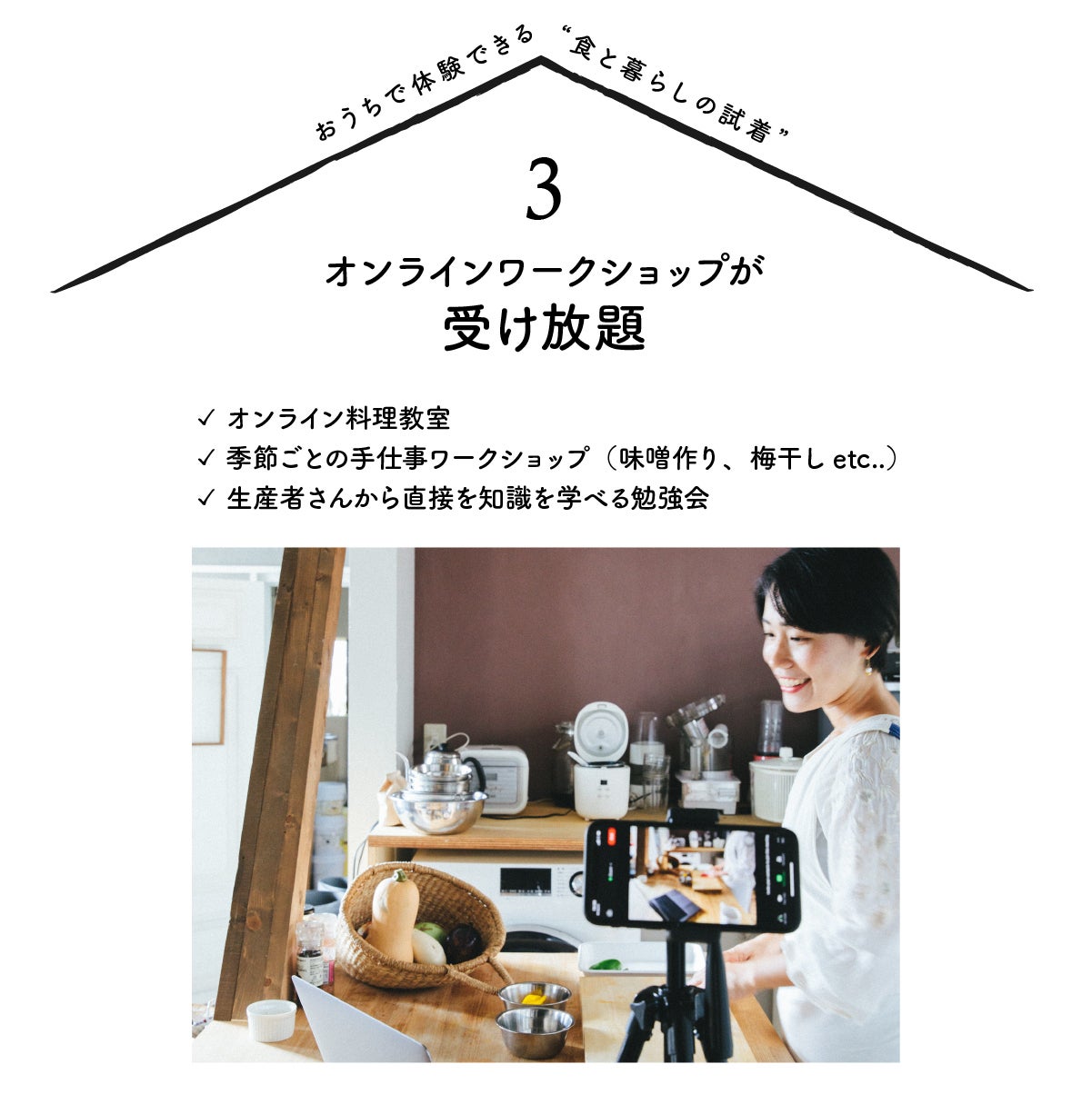 などの、オンラインワークショップが受け放題になります。(予約制&人数制限がある場合があります)