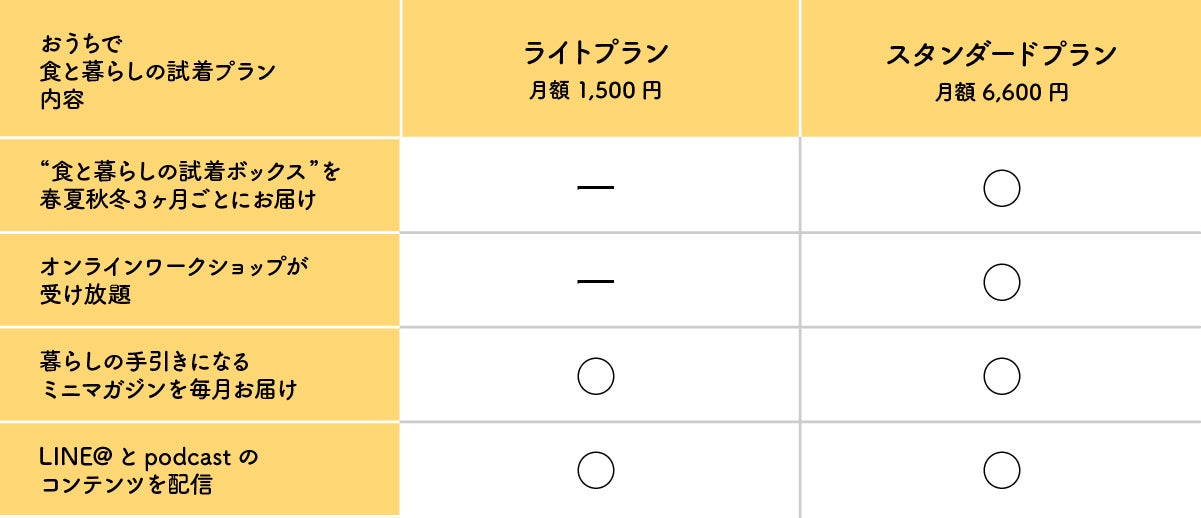「食と暮らしの試着室」のオープンと同時に、「食と暮らしの試着」をおうちで体験できるプランも用意します。