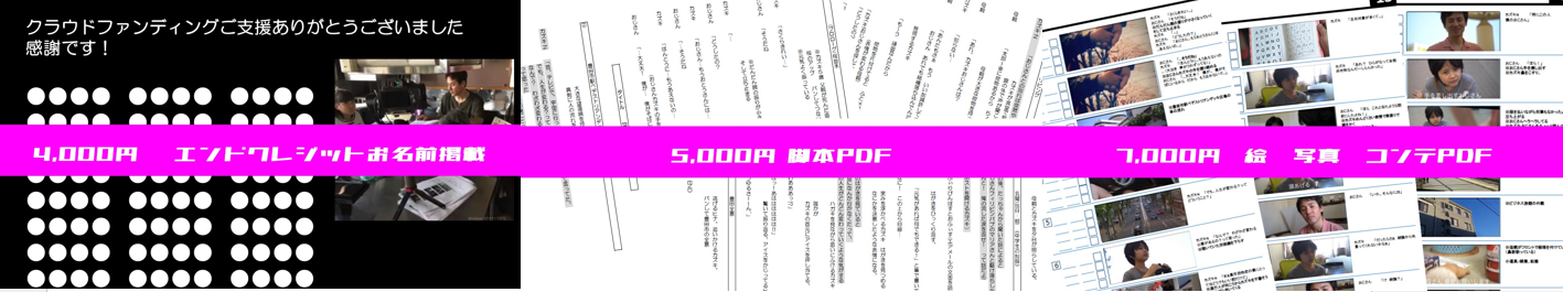 支援して頂いた方のお名前を作品のエンドクレジットにて流させて頂きます。※備考欄にエンドロールに記載する名前の記入をお願い致します。