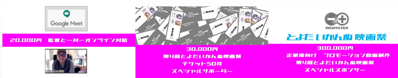 ⑫ 【企業様向け】YouTubeなどで流すプロモーション動画制作 + 第4回とよたいかんぬ映画祭スペシャルスポンサーとして上映させていただきます。300,000円