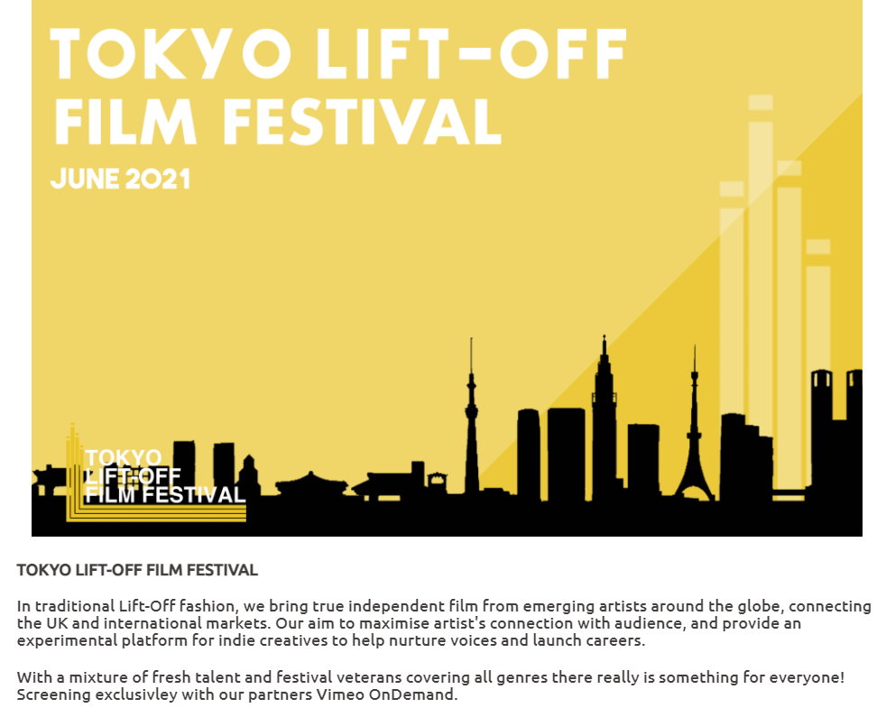 もっと見る吉報第一弾「Tokyo Lift-Off Film Festival 2021!」のオフシャルセレクションとして入選しました。