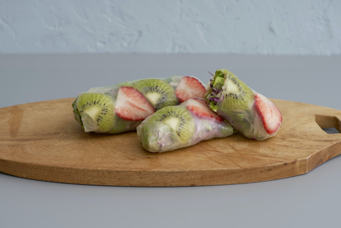 また、サラダバトンは、フルーツと野菜をライスペーパーで巻いた1本でもグッと食べ応えのあるサラダ。中のポテトソースに味がしっかりしみこんでいるので、何もつけずに十分美味しく、片手でもいただける究極のモバイルサラダなんです。