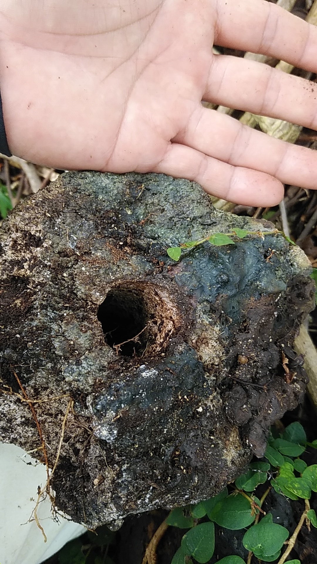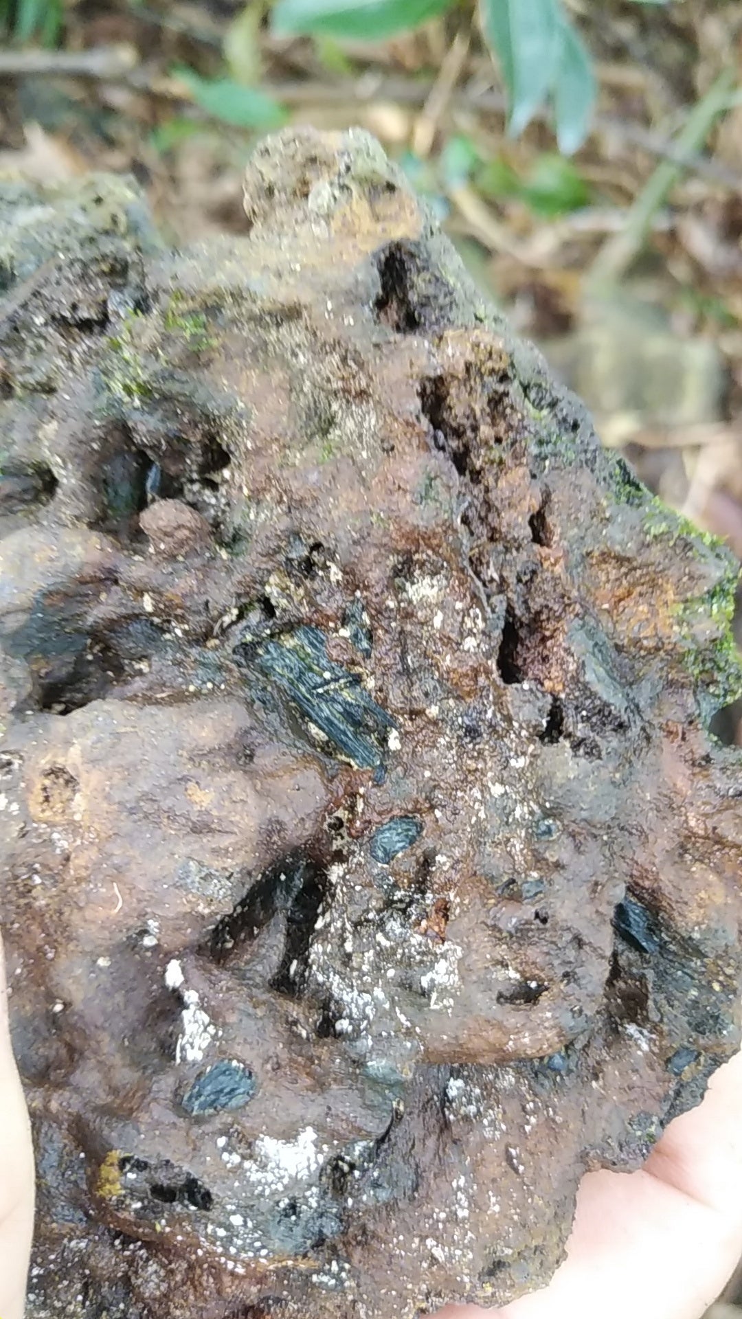 こちらは軽い鉄滓で、木炭の欠片がめり込んでいるのが見えます。