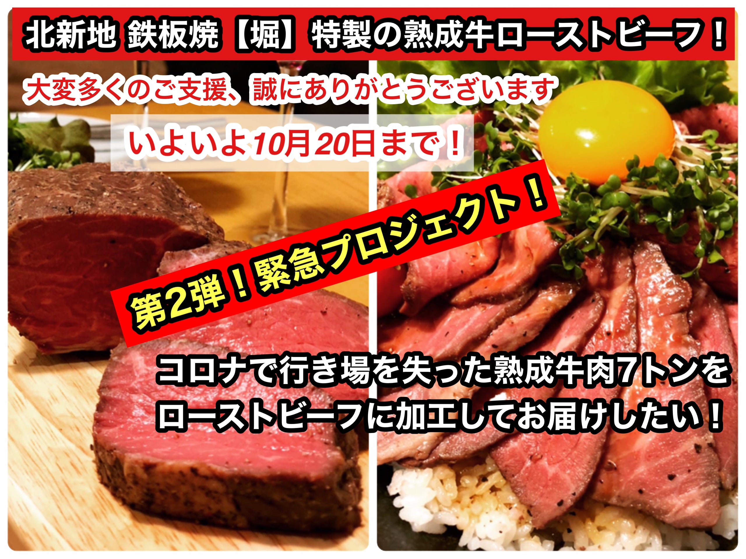 第2弾『北新地 鉄板焼【堀】行き場を失った熟成牛肉をローストビーフに加工してお届けしたい』