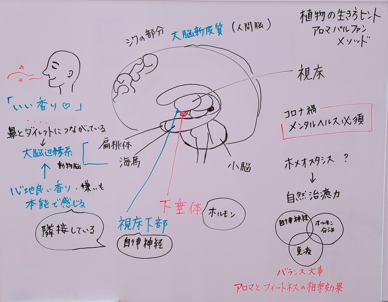 香りがダイレクトに届く「大脳辺縁系」は、自律神経と関わる「視床下部」やホルモン分泌に関わる「下垂体」と隣接しているのです。