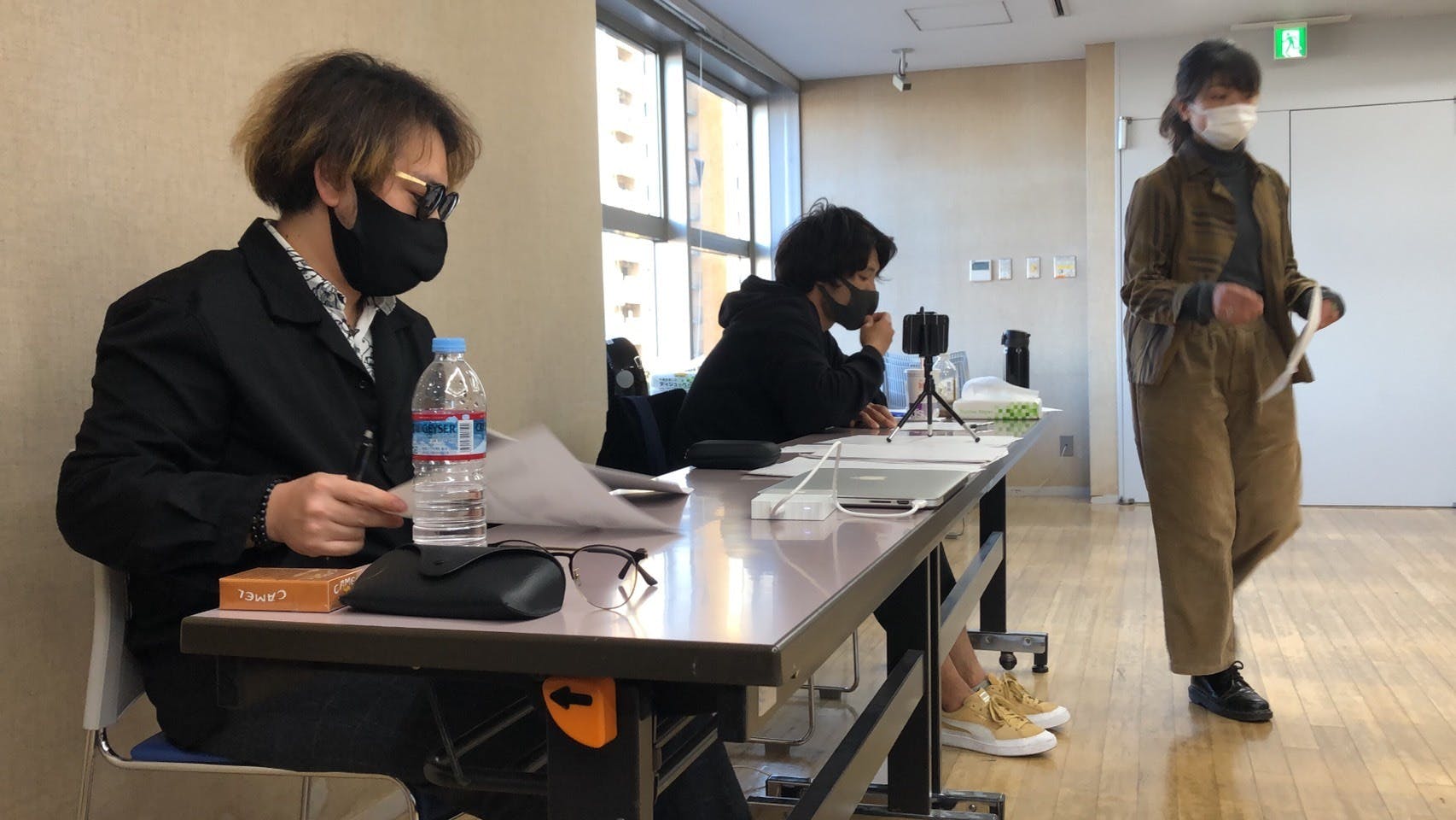 朝9時から会場作りをするシン監督と宮村くん