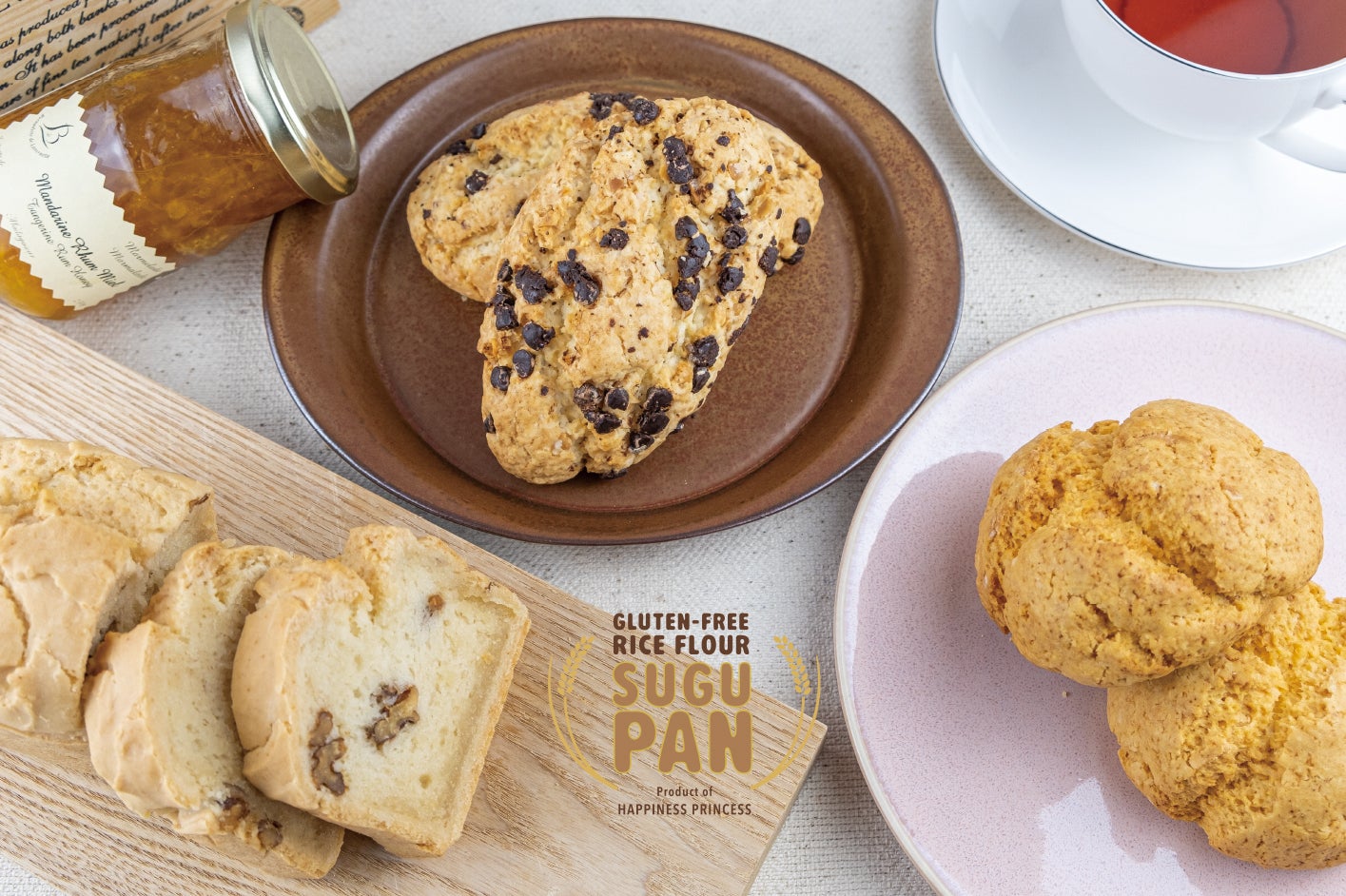 米粉のパンミックス「すぐパン」と、当店人気のグルテンフリースイーツを組み合わせた