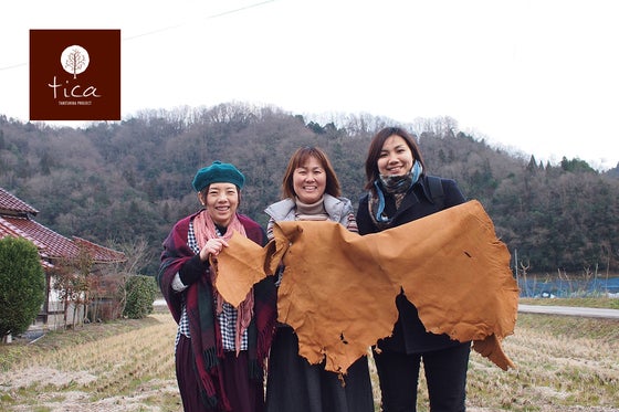 タケシカプロジェクトの革を使用して作った作品をtakehara(竹原)のinoshishi(猪)とshica(鹿)という意味を込めて、「tica(ティカ)」という名前にしました。マークには、森の中にいる鹿のツノと猪の牙をあらわしていて、思ったよりも身近にいる野生動物を表現しています。