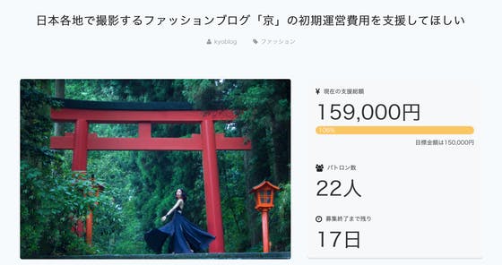 本プロジェクト『日本各地で撮影するファッションブログ「京」の初期運営費用を支援してほしい』ですが