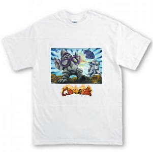 プロジェクト特製のご当地怪獣メガネガオンのTシャツをお送りします。サイズは指定サイズから後ほど、ご選択いただけます。