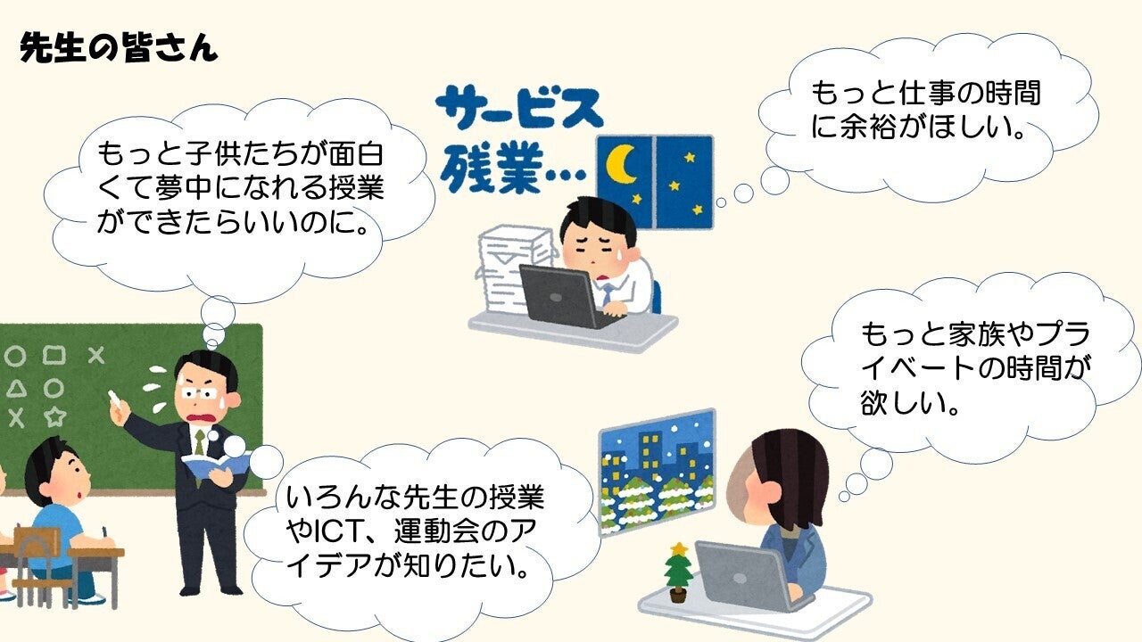 新型コロナウィルスで「業務の増加」「学校の感染対策」「リモート授業の導入」「密を避けた授業の組み立て」「勉強についていけない子供の増加」「孤独感を感じる子供の増加」など様々な問題が起こっている、まさに今だからこそ日本全国の教員が繋がり、手を取り合って乗り切らなければいけません。